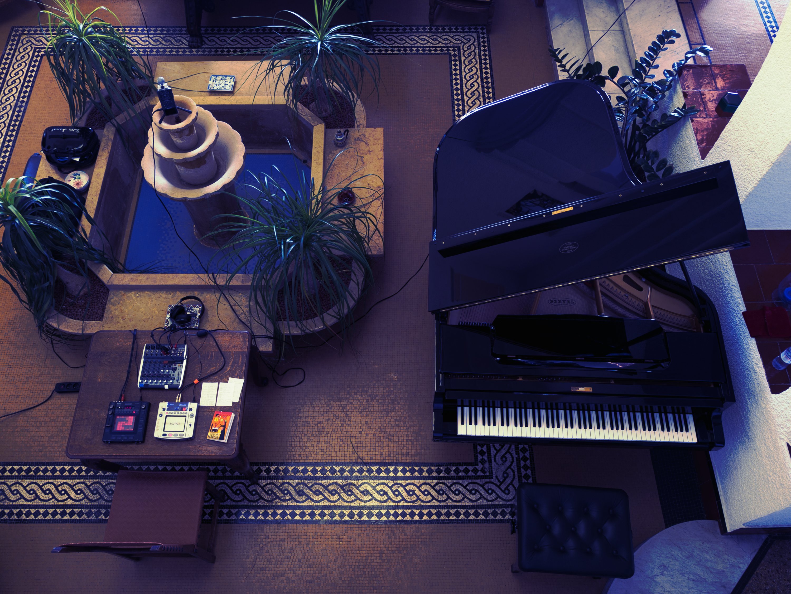 Le piano commence. Quelques notes espacées, comme si elles cherchaient leur place dans l’air. Des fragments se répondent, se répètent légèrement déplacés. On devine une architecture invisible, mais elle ne s’impose jamais. Elle respire. Puis les Kaoss Pads entrent en jeu — non pas comme une irruption, mais comme une brume fine. Un son se prolonge un peu plus longtemps, une résonance s’ouvre, un timbre se colore. Rien d’électroniquement agressif. Plutôt une présence discrète, une lumière en arrière-plan qui empêche l’ombre de devenir trop dense. La musique avance sans hâte. Elle ne raconte pas une histoire dramatique ; elle installe un paysage. Un paysage calme. Ici, tout est affaire de nuances, de silences, d’équilibres fragiles.